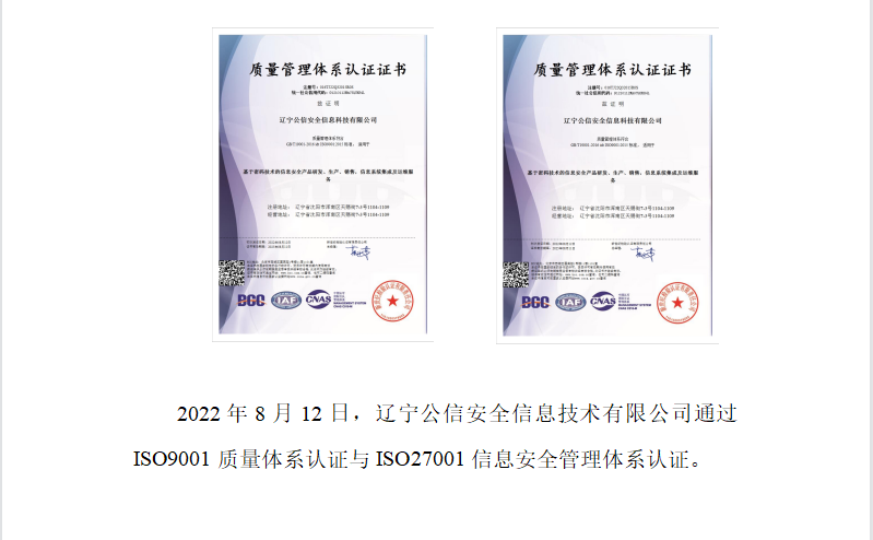 辽宁公信取得签名验签服务器商用密码产品认证证书